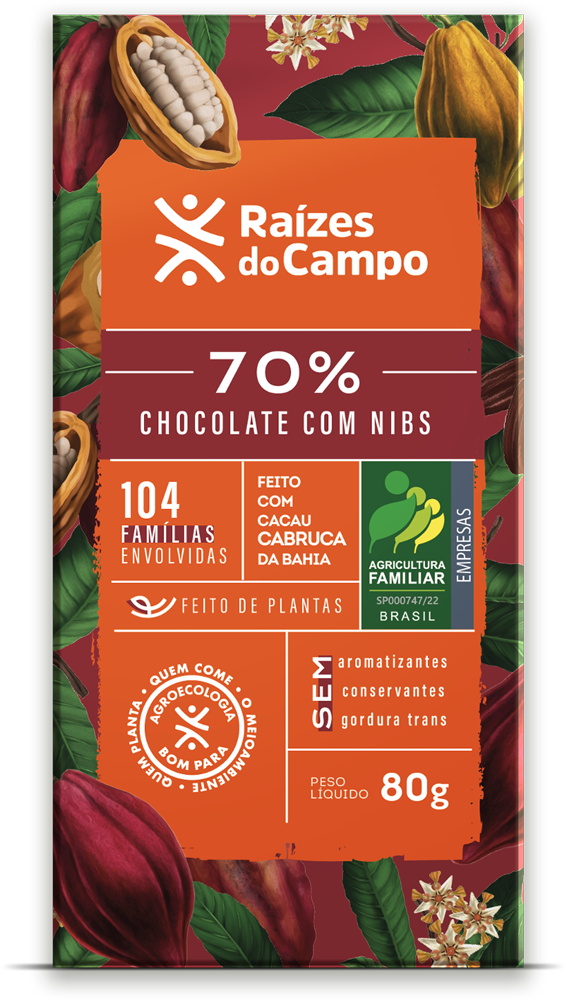 Chocolate rústico COM nibs DE CACAU, no Brasil sOMENTE chocolates artesanais apresentam esta característica, que além de contribuir na textura, tornam o chocolate ainda mais saudável. Essa é a identidade do nosso produto, bem diferente dos demais chocolates 70% que temos no mercado brasileiro, que são muito intensos.