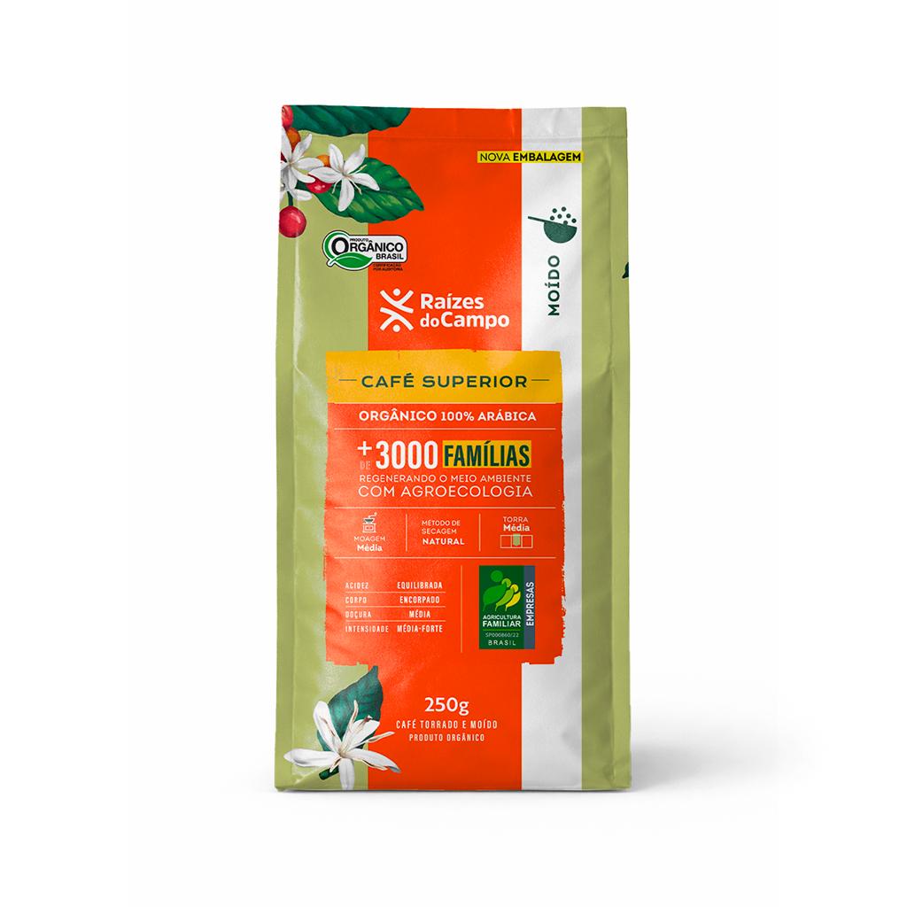 O Café Superior Orgânico Torrado e Moído Raízes do Campo é produzido com grãos 100% arábica cultivados de forma orgânica e agroecológica, em harmonia com a natureza e com respeito à agricultura familiar camponesa. Seu cultivo preserva o meio ambiente e fortalece o comércio justo, promovendo o desenvolvimento social e econômico das comunidades produtoras.